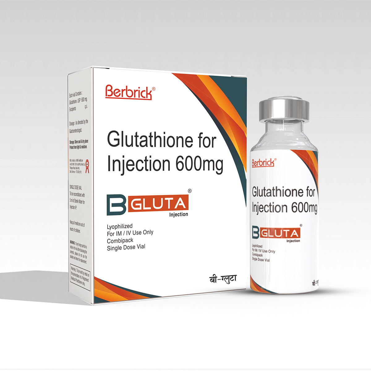 - B-Gluta Injection: Combo pack of a vial containing Glutathione 600 mg with Water for Injection
