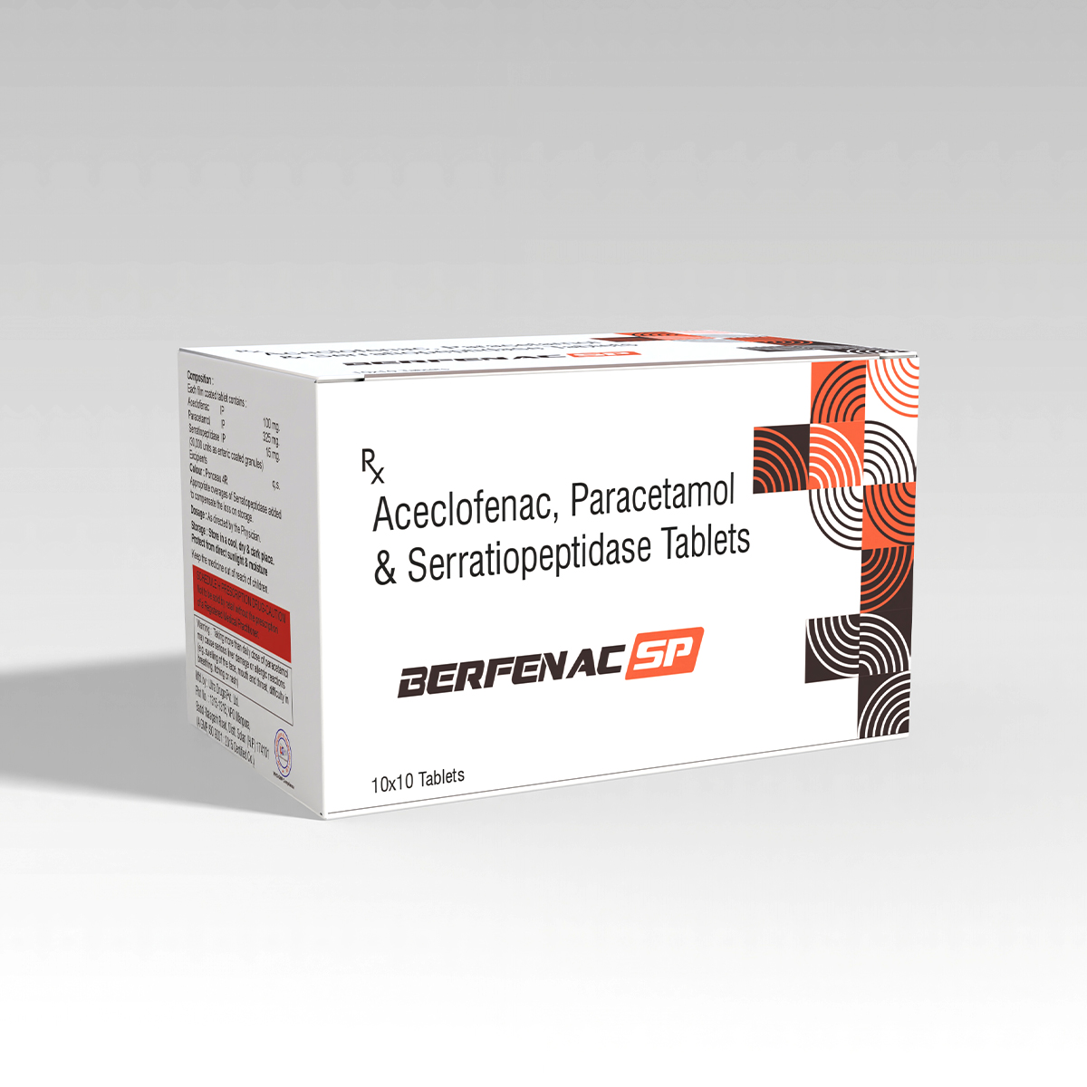 Aceclofenac 100 mg Non-steroidal anti-inflammatory drug (NSAID) – reduces pain & inflammation