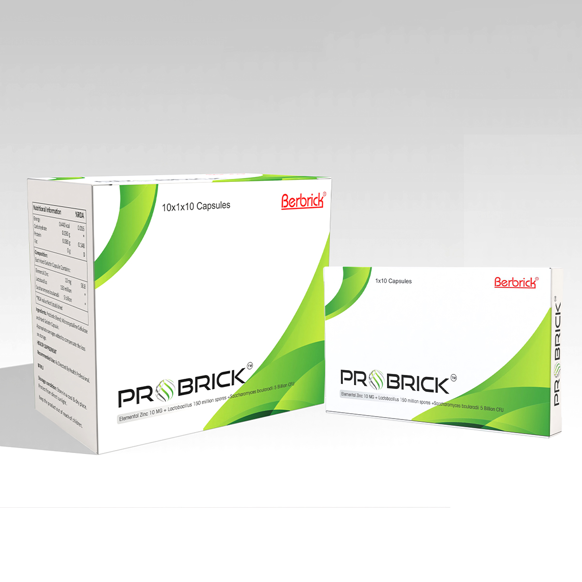 - PROBRICK: Alu-Alu pack of 10 capsules