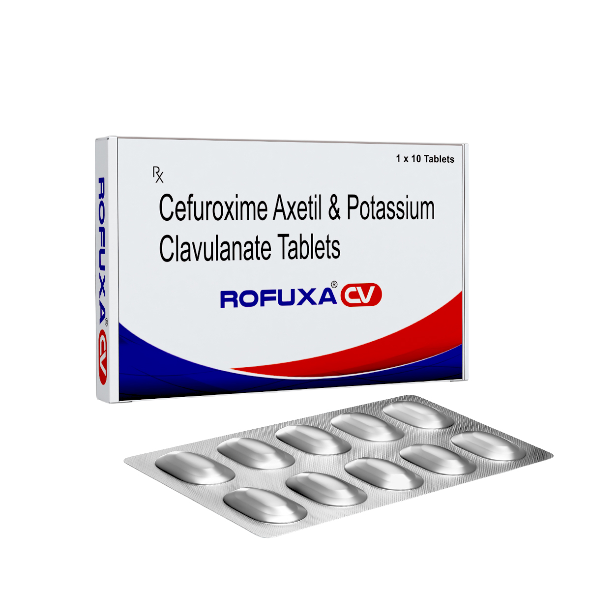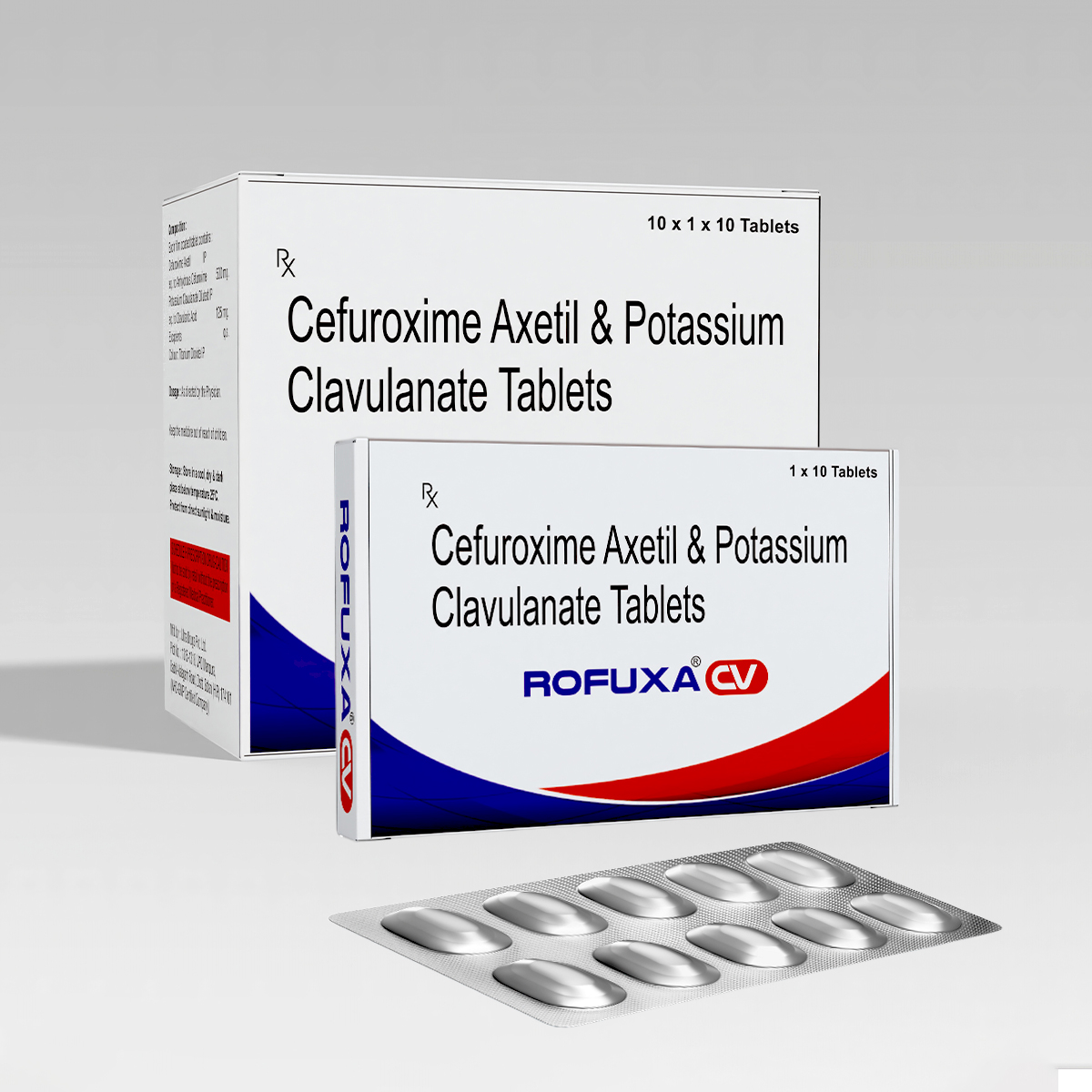 Cefuroxime Axetil 500 mg + Clavulanic Acid 125 mg, a broad-spectrum antibiotic combination used for treating moderate to severe bacterial infections, especially those resistant to ordinary cephalosporins or penicillins.