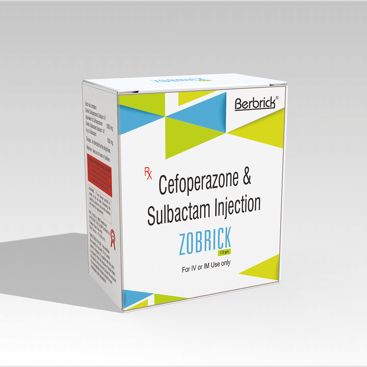 Zobrick is a combination of Cefoperazone, a third-generation cephalosporin, and Sulbactam, a β-lactamase inhibitor. This synergistic combination is formulated in a fixed ratio to effectively treat bacterial infections, especially those caused by β-lactamase-producing resistant pathogens.